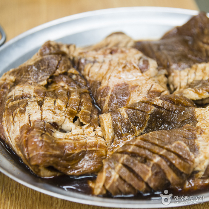 아산에서 손꼽히는 2대째 내려오는 갈비 요리의 명가이다. 40년 넘는 전통의 맛으로 순수 한우를 엄선하여 맛이 고소하고 담백한 것이 이곳의 자랑이다. 갈비탕 또한 사골의 깊은 맛이 우러나 그 맛이 일품으로 온천 관광 후 허기진 배를 만족시켜 준다. 불고기 백반은 육질이 부드러워 노인과 어린이가 먹기에 손색이 없다.