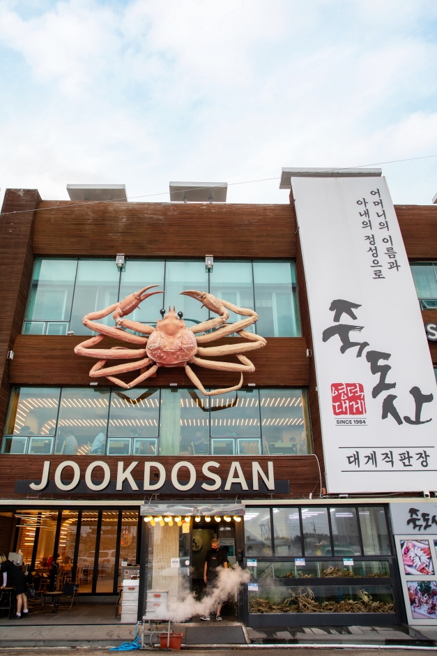 죽도산은 영덕군 강구항 대게거리 중간지점의 도로변에 위치한 대게전문점이다. 1층에는 대형수족관이 있어 많은 양의 대게와 활어가 보관되어 있고 2층은 유리창으로 폭포수처럼 물이 내려와 매우 시원한 느낌이 든다. 대게찜과 자연산활어회가 주메뉴로 담백한 게살을 먹고 난 뒤 내장에 밥을 볶는 볶음밥은 대게매운탕과 함께하면 그 맛이 별미이다. 식당 3층엔 민박시설이 있어 숙박도 가능하다. 넓은 주차장을 구비하고 있어 차량 방문에 용이하며 깔끔한 인테리어로 편안한 공간을 제공한다.