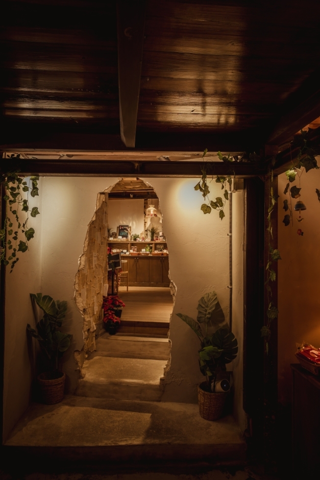 구룡포 근대문화역사 거리 내에 자리한 카페로, 드라마 <동백꽃 필 무렵>의 주요 배경이었던 ‘까멜리아’ 옆에 자리한다. 일본식 가옥의 빈티지한 분위기를 살린 까멜리아와 달리 이곳은 외관은 적산가옥의 형태를 띠지만 내부는 전혀 다른 풍경으로 눈길을 사로잡는다. 발리의 어느 리조트를 연상시키는 이국적인 인테리어가 마치 먼 나라로 여행을 떠나온 것처럼 기분 좋은 설렘을 느끼게 한다. 카페는 1층과 2층으로 나뉘는데, 1층에는 온통 초록빛 나무와 색색깔 꽃을 피운 화분들로 채워져 생기가 넘친다. 2층에는 야외 테라스도 마련돼 햇살 좋은 날 여유롭게 차 한 잔을 즐기기 좋다. 드라마 주인공의 이름을 딴 ‘동백이 빙수’도 구룡포만의 감성을 느끼기 좋은 메뉴다.