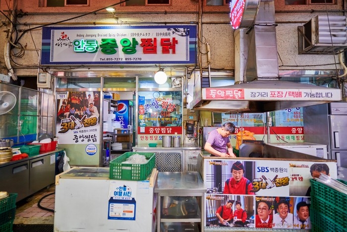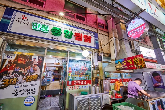 중앙찜닭은 경상북도 안동시 서부동 소재 안동찜닭골목에 있다. SBS 예능 프로그램 <백종원의 3대 천왕>, KBS 2TV 시사 교양 프로그램 <생생정보> 등 여러 방송에 소개된 바 있다. 깔끔한 외관과 예스러운 분위기를 연출하는 인테리어가 눈에 띈다. 30년 넘게 영업한 이곳의 대표 메뉴는 안동찜닭이다. 이 밖에 간장쪼림닭, 간장치킨, 마늘통닭, 후라이드 등을 판매한다. 서안동 IC에서 가깝고 주변에 안동문화관광단지, 안동레이크골프클럽이 있다.