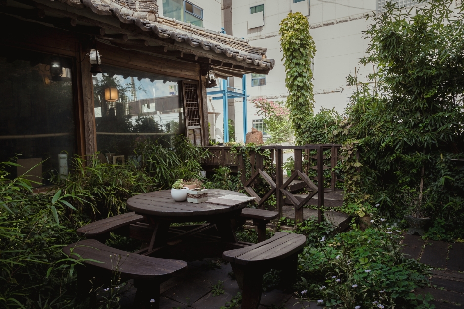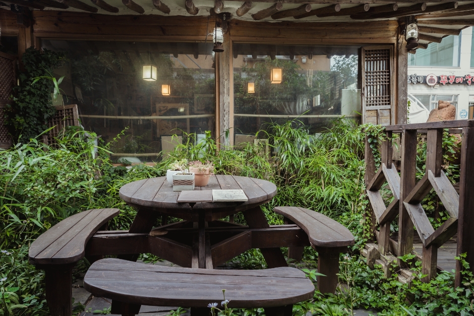건물 사이에 낮게 자리한 한옥 찻집이다. 영화 <경주>의 공윤희가 운영하는 전통 찻집 '아리솔'의 촬영지로, 주인분이 직접 만드는 황차가 맛있다. 영화의 모티브가 된 춘화는 능포다원 주인분의 남편 작품으로, 춘화를 비롯한 다양한 그림이 찻집 곳곳에 걸려 있다.