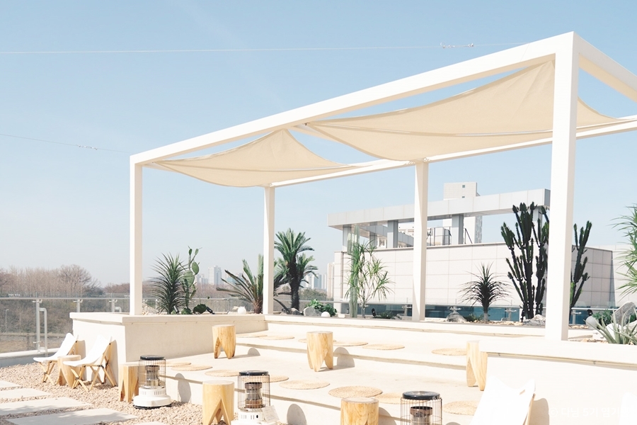 바다앞테라스는 영종도의 바다 풍경을 감상할 수 있는 카페로, 탁 트인 전망과 함께 편안한 시간을 보내기 좋다. 바다 바로 앞에 자리하고 있어 통유리 너머 탁 트인 전망을 감상할 수 있다. 특히 휴양지 리조트를 연상시키는 이국적인 분위기의 루프탑에선 따스한 햇살과 상쾌한 바다 향기까지 마음껏 즐길 수 있다. 아메리카노, 카페라떼 등 기본 커피 메뉴가 맛있으며, 시즌에 따라 파인애플이나 한라봉 같은 과일이 통째로 올라가는 생과일주스도 인기메뉴다.