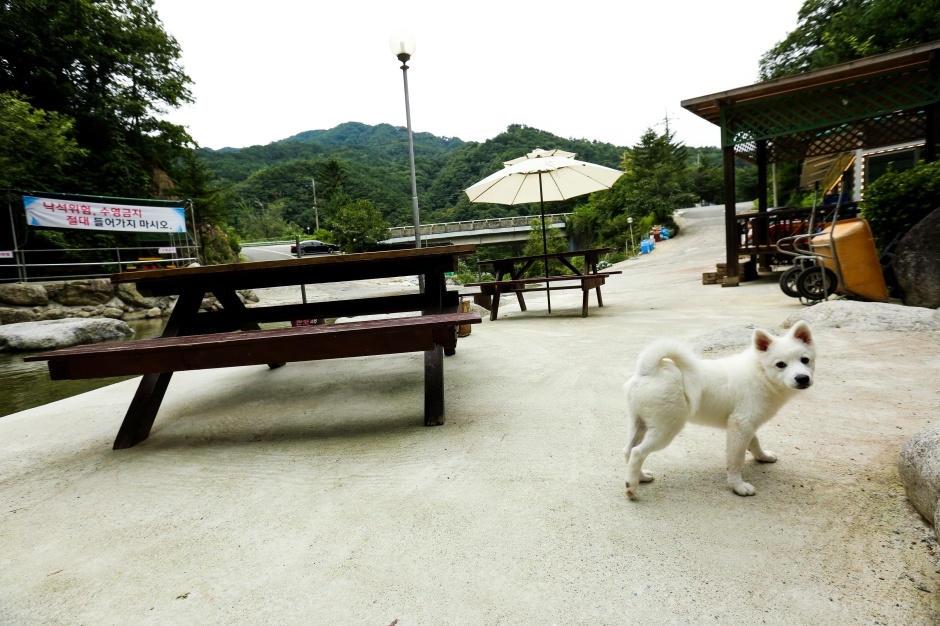 보문사 입구에 위치한 물레방아 식당은 보문사 방문길에 들르기 좋은 한식 맛집으로, 특히 도토리묵무침과 해물파전이 유명하다. 도토리묵은 직접 쑤어 만들어 아삭하고 시원한 맛을 자랑하며, 해물파전은 바삭한 식감과 풍부한 해산물 맛이 일품이다. 싱싱한 게를 이용한 게장정식과 다양한 산채나물 요리도 인기 요리다.