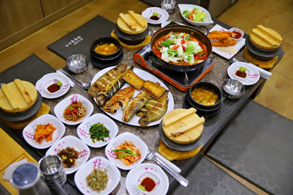 울산광역시 남구에 있는 착한물고기는 신선한 자연산 생선을 550도 이상의 화덕에서 구워주는 생선구이 전문점이다. 고온에 구워 비린내와 기름기가 없는 생선구이를 먹을 수 있다. 모듬생선구이와 화덕구이 메뉴 외에도 갈치조림, 매콤명태찜, 소갈비찜 등 조림과 찜 요리가 풍부하게 준비되어 있다. 반찬이 다양하고 정갈하며, 솥밥과 함께 건강한 식사를 즐길 수 있는 곳으로, 주차 시설이 잘 갖춰져 있어 편리하게 방문할 수 있다.
