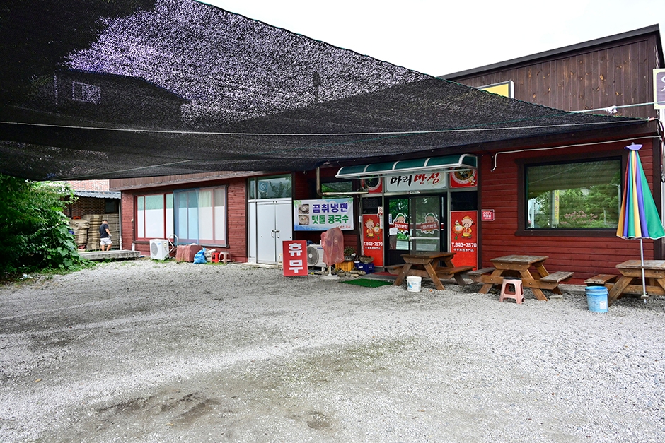 물놀이하기 좋은 거창 승수대에서 1㎞ 정도 떨어진 곳에 있는 마리반점은 2021년 TV 프로그램 <생활의 달인> 출연 이후 더욱 유명해졌다. 넓은 주차장과 마당에 비해 내부 테이블은 6개 정도여서 대기가 필수인 곳으로 언제나 손님들로 북적이는 맛집이다. 흔하지 않은 비주얼의 양파쟁반짜장은 면 밑의 까만 짜장 소스와 면 위의 빨간 소스까지 잘 섞어서 먹으면 된다. 일반적인 중식 면이 아닌 넓적한 면을 사용해 소스가 잘 묻어나 더욱 풍부한 맛을 느낄 수 있다고 한다. 또한 인심 좋게 넣은 양파의 은은한 단맛에 소라와 새우, 오징어 등 해산물 또한 듬뿍 들어 있어 씹는 맛도 일품이다. 가까이에 금원산 자연휴양림이 있어 함께 둘러보기 좋다.