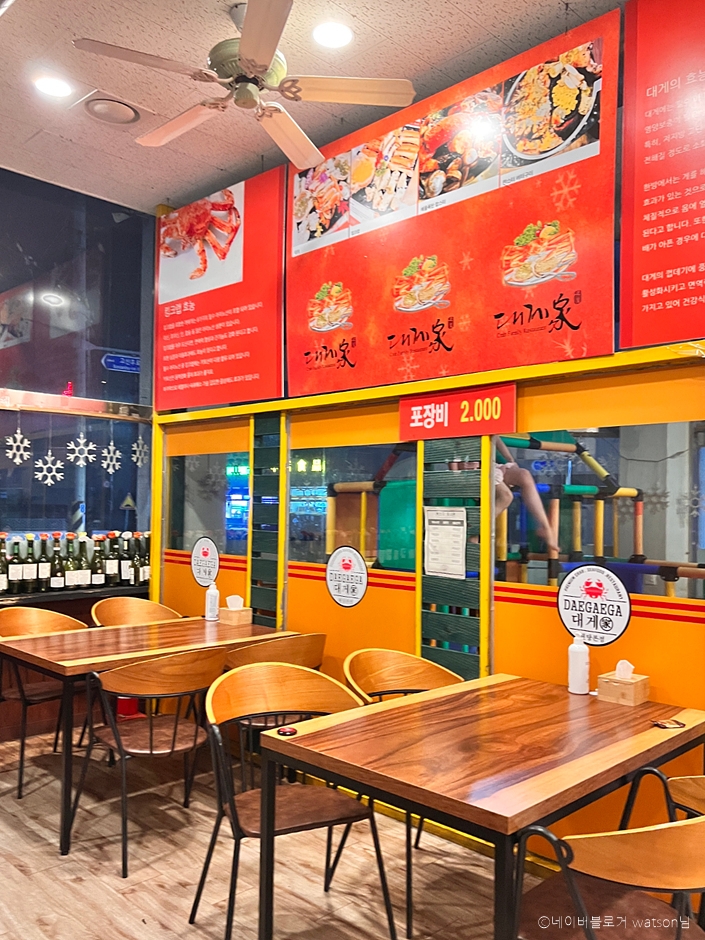 대게가는 인천 서구 원당동 창신초등학교 부근 주택단지에 있다. 신선한 킹크랩과 대게를 맛볼 수 있는 해산물 전문점이다. 인천지하철 2호선 완정역과 김포골드라인 풍무역에서도 올 수 있다. 대게가는 벽돌 마감의 2층 상가주택 단독 건물에 있다. 내부에는 기본 4인석 테이블이 여러 개 세팅이 되어 있으나 인원수에 맞게 조절할 수도 있다. 어린이를 동반한 가족 단위 손님을 위해 놀이방 시설도 마련되어 있다. 이곳의 대표 메뉴는 대게, 킹크랩, 랍스터다. 매일 시세에 따라 가격이 변동된다.