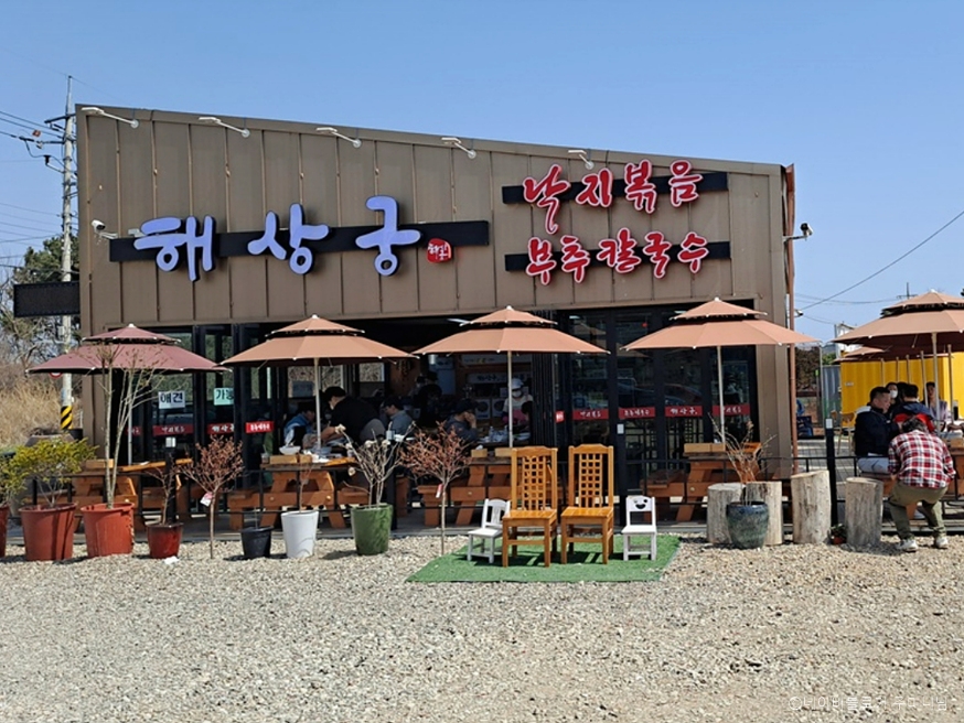 해상궁은 인천광역시 중구 을왕동에 있다. 이곳은 가게 앞과 옆에 주차장이 넓게 마련되어 있다. 이곳의 내부는 4인석 입식 테이블로 마련되어 있고 간격이 넓어 단체모임과 회식 장소로 적합하다. 이곳의 대표 메뉴는 낙지볶음과 해물칼국수 등 해산물 요리다. 신선한 재료로 만든 낙지볶음은 매콤하면서도 깊은 맛이 있으며, 넓은 주차장과 편안한 분위기로 가족 단위 방문객에게 인기가 많다. 인근에 인천국제공항, 용유도해변, 을왕리해수욕장, 왕산해수욕장 등 다양한 관광지가 있어 연계 관광을 즐길 수 있다.