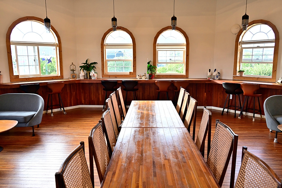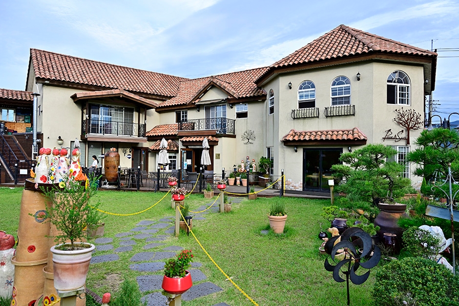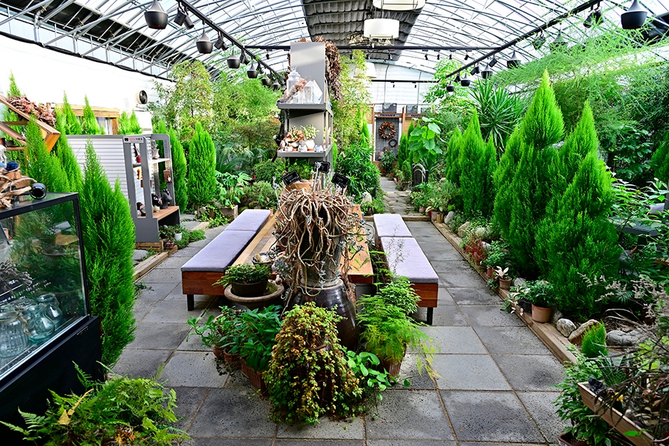 파우제앤숨은 식물원, 그리고 앞마당의 잔디가 매력적인 자연친화적 카페이다. 파우제는 독일어로 ‘휴식, 쉼, 멈춤’의 뜻을 가지고 있는 만큼 식물원 카페 파우제앤숨에 머물며 힐링과 여유를 찾기 바라는 사장님의 배려이다. 본관과 별관, 놀이터, 연못, 산책길 등을 갖추고 있다. 크고 작은 식물들이 가득한 별관에서 메뉴를 주문하고 식물들을 둘러보다 진동벨이 울리면 본관에 가서 음료를 픽업하고 베이커리를 구매하는 형식이다. 본관의 카페 공간은 식물들은 없지만 아늑하고 차분하게 꾸며 놓았다. 별관은 식물들 사이사이 테이블을 배치하여 원하는 곳에 앉아 커피를 마실 수 있다.