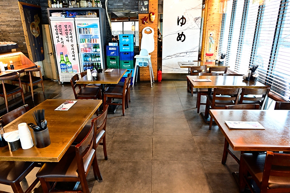 양산 부산대병원 근처에 있는 스시유메는 평일, 주말 상관없이 줄 서서 먹는 초밥 맛집이다. 택지 안에 있어 따로 주차장이 마련되어 있지 않아 가게 앞 갓길에 주차해야 한다. 깔끔한 내부는 테이블 7개와 바 테이블로 이루어져 있고 식사 시간에 맞춰 오면 대기가 발생할 수 있다. 초밥, 캘리포니아 롤, 우동, 덮밥 등 식사뿐 아니라 어묵탕, 민물 장어구이, 모둠 사시미 등 간단한 안주류도 판매하고 있다. 점심 특선과 오마카세 점심 특선은 여러 종류의 초밥과 롤, 튀김 우동이 나오는 세트 구성으로 가성비 좋은 인기 메뉴이다. 남양산역이 가까이 있고 양산 디자인공원과 음악 분수공원이 있어 식전 후에 가볍게 산책하기에도 좋다.