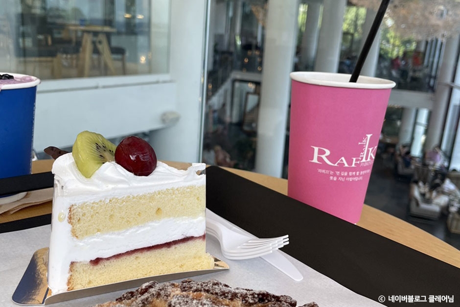 라피크란 ‘먼 길을 함께 할 동반자’라는 뜻의 아랍어이다. 카페 내부 곳곳에 포토존이 마련되어 있다. 들어가자마자 주문해야 하는 시스템으로 음료를 주문한 후에는 빵을 둘러보고 베이커리 카운터에서 다시 주문해야 한다. 층고가 높아 통창으로 들어오는 빛도 좋고 좌석도 많아 앉아서 쉬기 좋다. 카페 외부에는 야외 자리가 있는데 바다가 보이는 전망대라 시원한 바람이 부는 계절에 오면 좋다. 다양한 레저 체험을 할 수 있는 예술랜드 리조트 안에 있는데 주위에 숙박시설도 있다. 건물 아래에는 몽돌밭으로 이어지는 길이 있어 자갈 위 파도 소리를 들을 수 있다.