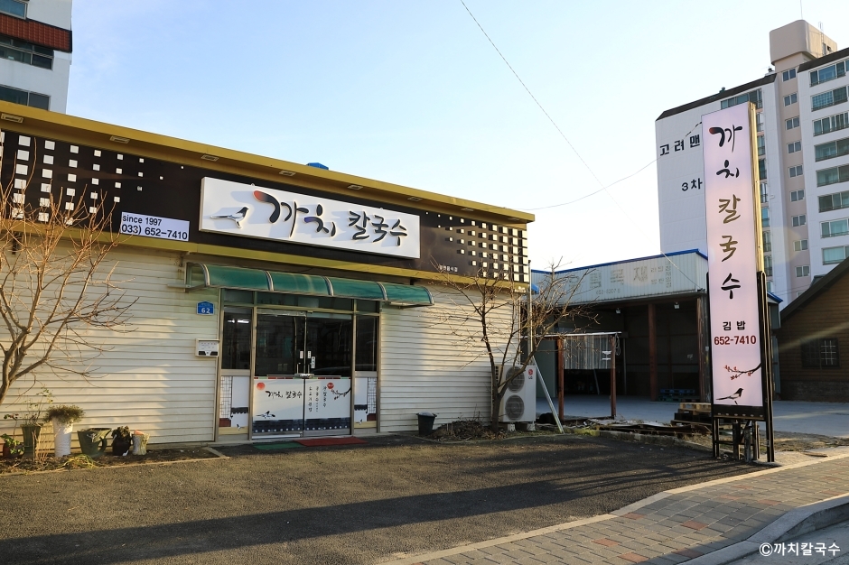 까치장칼국수는 강릉시 강릉역 주변에 있는 장칼국수 맛집이다. 3대 국수 면발로도 선정이 되었다는 국수로 장칼국수를 끓이고 있다. 메뉴는 간단하게 장칼국수, 소고기김밥, 공깃밥이다. 여름에만 한정 메뉴로 검은콩으로 만든 콩국수를 하고 있다. 장칼국수만 먹으면 밥이 은근히 당기는데 공깃밥을 별도로 판매하고 있다. 장칼국수 국물에 김밥을 적셔서 먹는 고객들도 많다. 겉절이와 깍두기는 테이블에 항아리를 두고 먹을 만큼 덜어 먹게 되어 있다. 매장에서 먹는 고객도 많지만, 현지인 맛집이라 포장해가는 고객들도 많다. 주차는 매장 앞에 몇 대 가능하다.