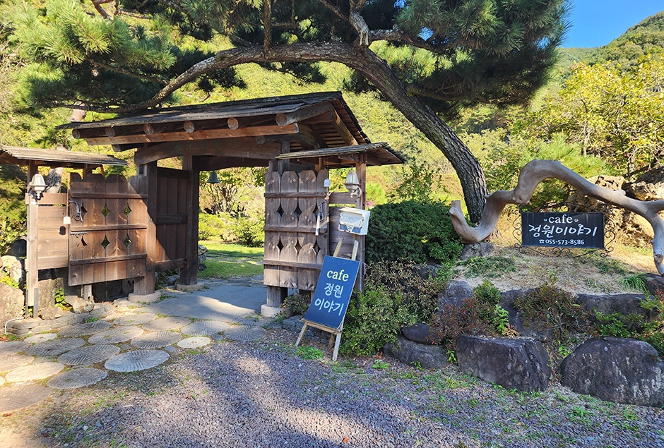 도시에서 벗어나 자연 속에서 힐링하기 좋은 정원이야기는 유곡천과 멋진 조경을 볼 수 있는 카페이다. 숲 속에 정원을 조성하고 산책길을 만들어 운치가 있다. 카페 입구의 멋스러운 대문과 소나무가 아름답게 조화를 이루고 있어 눈길을 이끈다. 커피를 마실 수 있는 공간은 실내와 테라스가 있고 정원 곳곳에도 좌석이 마련되어 있어 날이 좋은 날 밖에 앉아서 여유를 즐길 수 있다. 커피를 마신 후 가볍게 걷기 좋은 정원이야기는 작은 폭포와 여러 종류의 나무, 꽃이 즐비하여 볼거리도 많다. 아이, 반려동물과 함께 특별한 추억을 만들고 싶다면 방문하는 것을 추천한다.