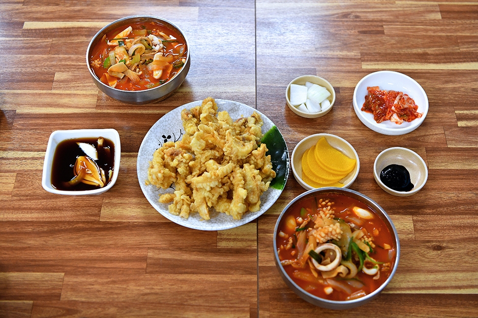 비응반점은 비응항에 있는 유명한 짬뽕 전문점이다. 매장 내부는 넓고, 테이블석과 좌식 테이블이 따로 있어, 단체식사도 가능하다. 이곳에서 판매하는 면류에는 짜장과 해물짬뽕 등 일반 중식당에서 파는 메뉴가 있고, 밥류에는 볶음밥과 잡채밥 등이 있다. 여름 시즌 메뉴로 물냉면과 비빔냉면, 냉콩국수도 판매한다. 평범해 보이는 중국식당이지만 이곳만이 가진 시그니처 메뉴는 따로 있다. 바로 국내산 최상급 갑오징어를 넣어 만든 갑오징어 탕수가 바로 그것이다. 갑오징어를 큼직하게 썰어 탕수육처럼 튀겨낸 것인데, 튀김옷이 얇고 바삭하며, 갑오징어 특유의 쫄깃한 식감이 별미다.