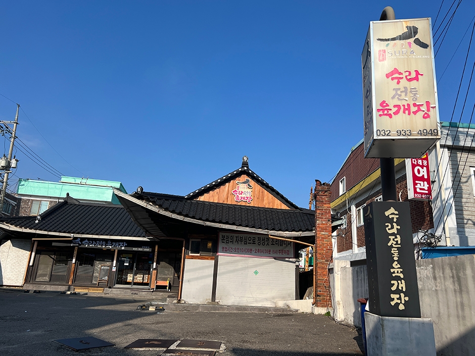 수라전통육개장은 강화도 강화군청 건너편에 있다. 이곳은 육개장 전문 맛집이다. 매장 안은 기본 4인 입식 테이블로 구성되어 있고 내부는 넓어 단체 모임, 가족 모임 등이 가능하다. 육개장 칼국수는 매콤하면서도 깊은 맛이 일품이며, 보쌈은 야들야들한 식감과 한방향으로 인기가 많다.