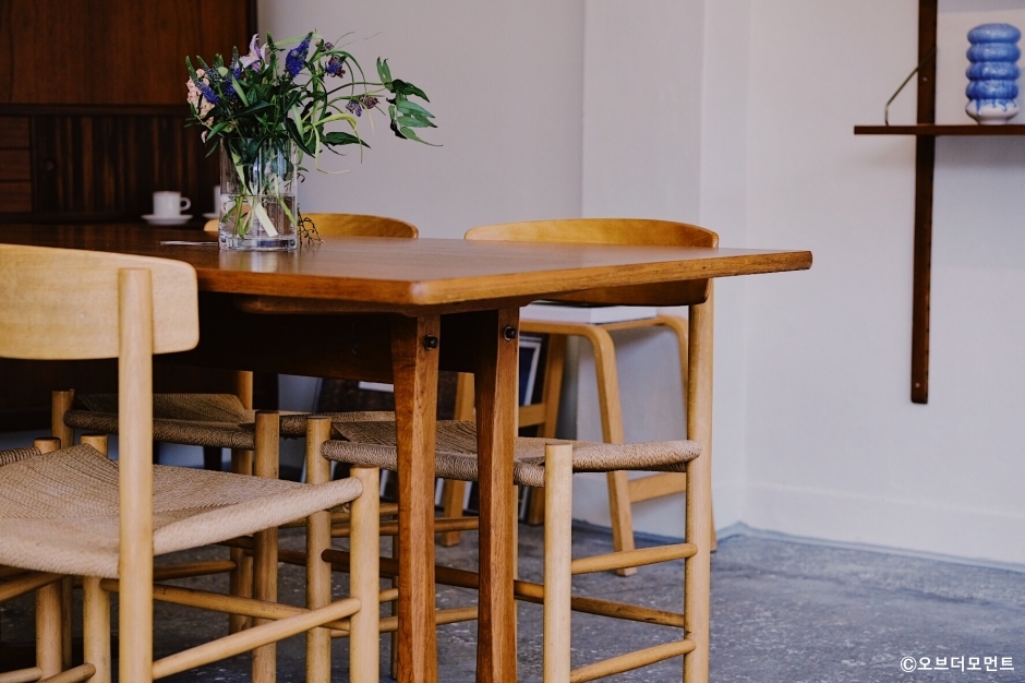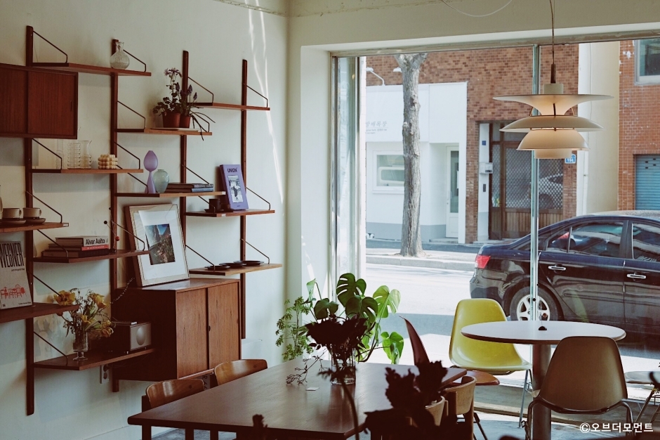 오브더모먼트는 강원도 강릉시 시내에 있는 카페이다. 식물판매점과 카페를 함께 운영하고 있어 작은 온실 속에 앉아 있는 기분이다. 작은 소품 화분들과 인테리어를 아주 어울리게 배치했다. 어느 작은 공간도 주인장의 손길이 안 닿은 곳이 없는 듯하다. 꾸민 듯 꾸미지 않은 듯 꾸민 공간의 대표적인 곳이다. 감각적인 식물과 우드 인테리어로 색감이 정말 예쁜 곳이다. 1층은 카페와 꽃집이고 2층에서는 플라워 레슨을 운영한다. 커피 맛이 좋은 독립 카페이다. 주문은 메뉴지를 한 장 떼어내어 표시한 후 제출하면 된다. 커피나 디저트 종류가 많지는 않지만 꼭 있어야 할 것만 갖춘 곳이다. 전용 주차장은 없지만 제일고 언덕 길가에 주차가 가능하다.