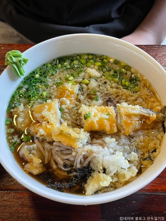 소복소복은 평일에도 웨이팅이 있는 곳이다. 가게 앞에는 대기자 명단을 적는 노트가 있어 먼저 이름과 인원수를 올려놓고 주변에서 대기하면 순서대로 입장할 수 있다. 메뉴는 새우소바, 장어소바, 새우튀김 세 종류다. 새우소바에는 바삭한 새우튀김이, 장어소바에는 손바닥만 한 큼직한 장어튀김이 올라간다. 소바면 위에 튀김이 올려진 상태로 나오기 때문에 튀김이 살짝 국물에 젖은 상태로 나오지만 그래도 충분히 바삭함을 유지하고 있다. 더 바삭한 튀김을 원한다면 새우튀김을 따로 주문하는 것이 좋다.