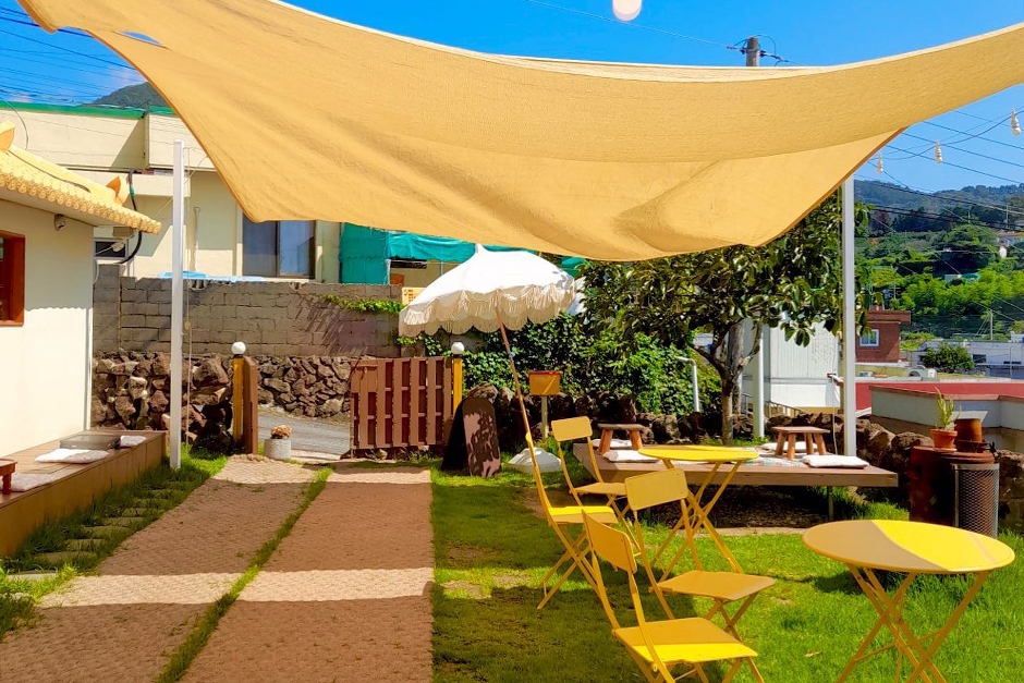 유자밭 카페는 거제시 사등면 작은 어촌 마을에 있다. 카페 마당에는 유자나무와 비치파라솔, 돌담 벽 등이 있어 이색적인 분위기가 난다. 특히 노란색 건물 지붕이 눈길을 끈다. 야외 공간과 실내 공간으로 이루어진 유자밭 카페는 좌식 테이블도 있어 아이와 함께 오기 좋은 곳이다. 카페 내부는 아늑하고 조용한 분위기로 4인 이상 착석이 불가하다. 대표 메뉴는 직접 농사지은 유자로 만든 유자차와 유자에이드, 유자 피나콜라다가 있다. 주차는 근처 방파제 주차장을 이용해야 한다. 야외 좌석은 반려견 동반이 가능하다.