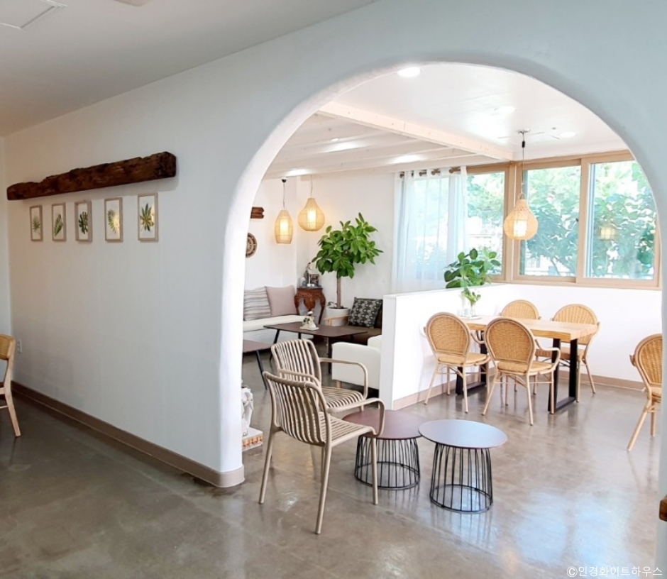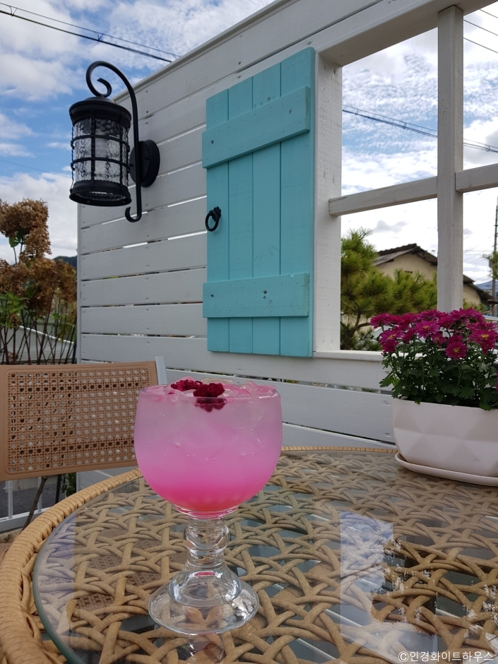 철원에 위치한 인경화이트하우스는 프로방스풍의 대형 베이커리 카페다. 넓은 정원에는 꽃들은 물론 분수까지 아기자기하게 가꾸어져 있고 건물 옥상에는 루프탑 정취를 즐길 수 있도록 꾸몄다. 베이커리 카페답게 다양한 빵들이 준비되어 있는데 프랑스산 이즈니 버터를 사용해 풍미가 좋다. 또한 다양한 꽃차를 활용한 음료가 있어서 취향별로 아름다운 빛깔과 향을 즐길 수 있다. 대규모 카페라 다양한 분위기의 공간이 있어 가족 단위는 물론 모임을 하기도 좋다. 고석정과 한탄강 CC에서 가깝다.