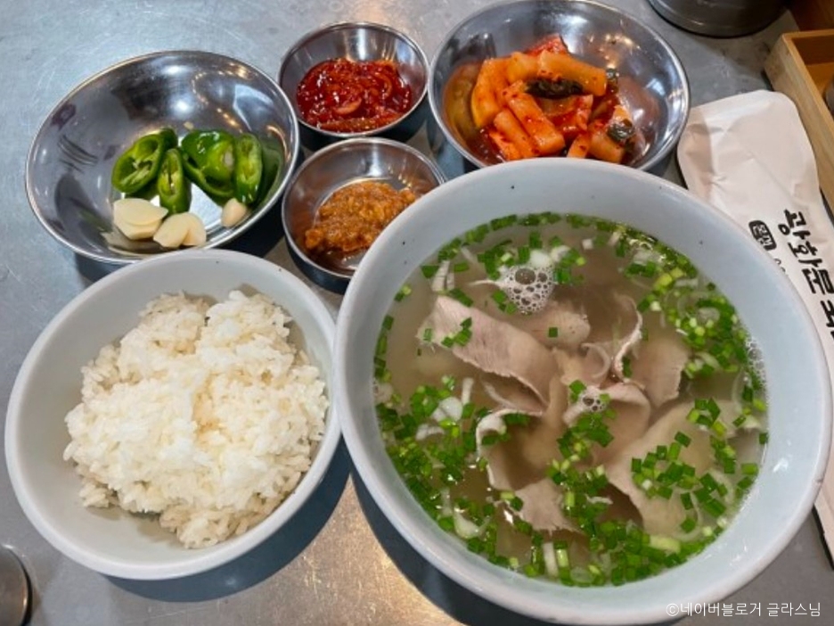 지하철 3호선 광화문역 6번 출구에서 도보 5분 거리에 있는 국밥 전문점이다. 맑은 국물의 돼지국밥과 평양냉면, 부드러운 돼지수육이 인기이다. 피순대와 가자미식해 같은 특별한 메뉴도 맛볼 수 있다. 넓은 내부 공간으로 단체 방문이나 혼밥에도 적합하다. 근처에 다양한 박물관과 미술관이 있어서 식사 전후에 둘러보기 좋다.