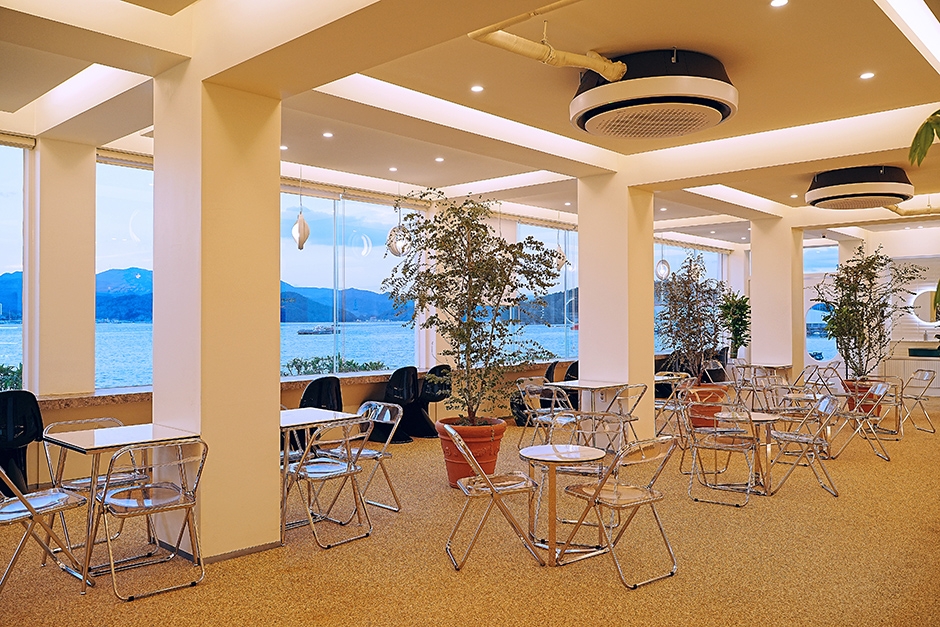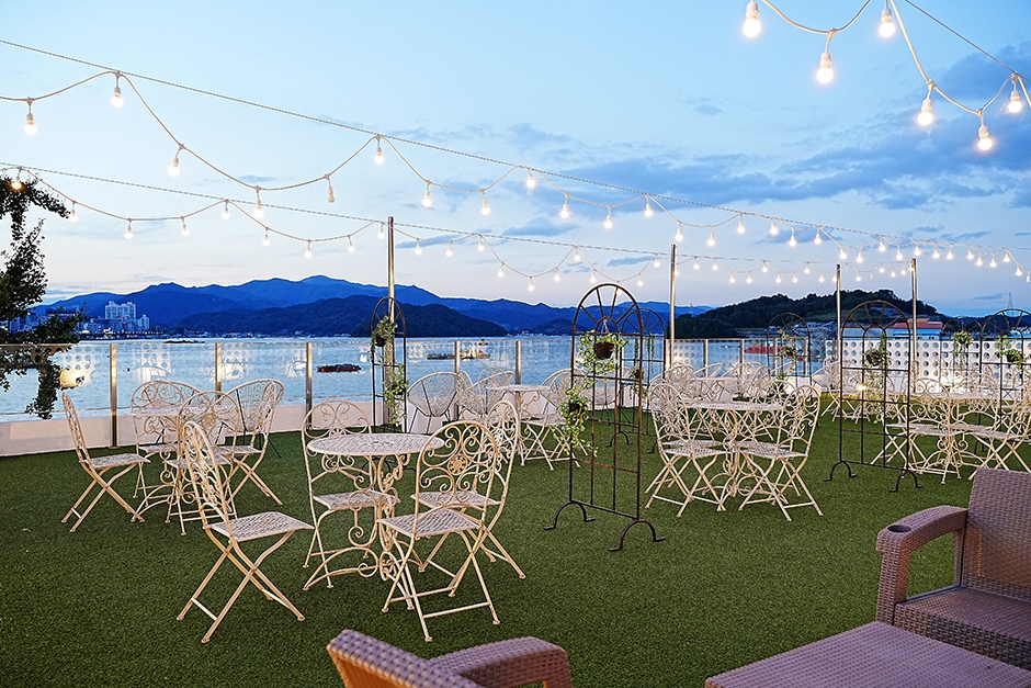 1971 카페는 폐교한 장문 초등학교를 리모델링한 이국적인 오션뷰 카페다. 죽림 시가지와도 가깝고 통영 시외버스터미널에서 차로 5분 거리에 있다. 1969 BBQ라는 고깃집도 함께 운영하고 있으며 전용 주차장이 넓어 주차 걱정이 없다. 카페 내부는 탁 트인 느낌으로 1층과 루프탑으로 운영하고 있다. 화이트톤의 인테리어와 바다를 향해 바닥부터 천장까지 나 있는 통창은 시원한 개방감을 준다. 메뉴는 아메리카노를 비롯한 커피류와 초코라떼, 고구마라떼 등의 라떼류, 1971 카페만의 시그니처 차와 에이드가 마련되어 있다. 야외 마당에는 작은 분수대와 선베드, 파라솔 의자, 바다를 따라 심어진 야자수가 마치 리조트를 연상케 한다. 루프탑에 있는 나무 둥지 역시 이곳만의 시그니처 공간으로 가족 나들이와 데이트 장소로도 추천한다. ※ 반려동물 동반 불가