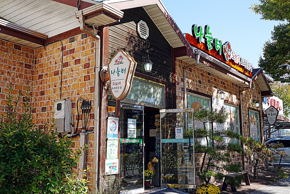 나눌터는 순천만 국가정원 근처에 있는 도토리 요리 전문점이다. 따뜻함이 느껴지는 벽돌집에 창문에는 커다랗게 프린트된 도토리 그림, 나무로 된 인테리어로 마치 어느 숲속의 집에 온 기분을 느끼게 한다. 나눌터라는 이름 역시 정겨운 음식과 더불어 사랑과 행복 등의 감정을 모두 함께 나누어 가지는 공간이라는 뜻의 음식점으로, 도토리를 활용해 만든 요리를 메인으로 한다. 토속전과 묵무침, 묵 보쌈, 도토리 탕수 등을 코스처럼 즐길 수 있게 했다. 또한, 검은깨 도토리로 만든 수제비인 흑임자탕과 들깨 도토리로 만든 수제비도 이곳에서만 즐길 수 있는 시그니처 요리다. 표고버섯 탕수와 도토리 쟁반국수도 독특한 식감과 감칠맛 있는 소스로 인기 있는 메뉴이다.