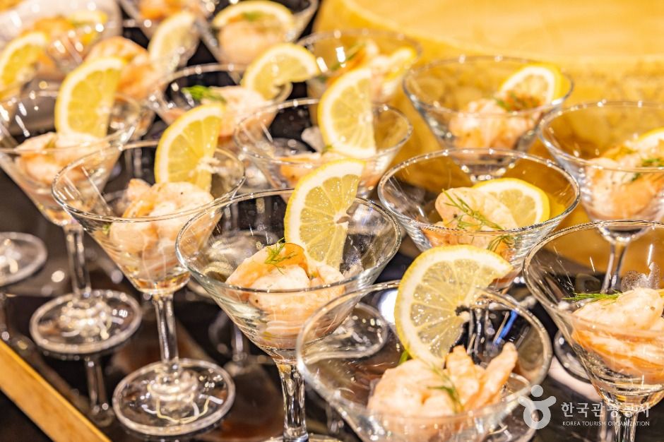 마리나 블루키친은 부산 해운대 마린시티에 위치한 프리미엄 상설 뷔페 레스토랑이다. 신선한 제철 식재료를 활용한 다양한 한식과 글로벌 요리를 선보인다. 약 200여 가지에 달하는 메뉴는 채식, 글루텐프리 등 다양한 식단을 고려해 구성되어 외국인 방문객에게도 만족도 높은 식사를 제공한다. 특히 한국의 전통적인 맛을 현대적으로 재해석한 메뉴들이 인상적이며, 해산물 요리와 라이브 섹션에서는 현장에서 조리되는 생생한 음식을 즐길 수 있다. 마리나 블루키친은 단순한 식사가 아닌, 한국 식문화와 환대를 함께 경험할 수 있는 공간이다.