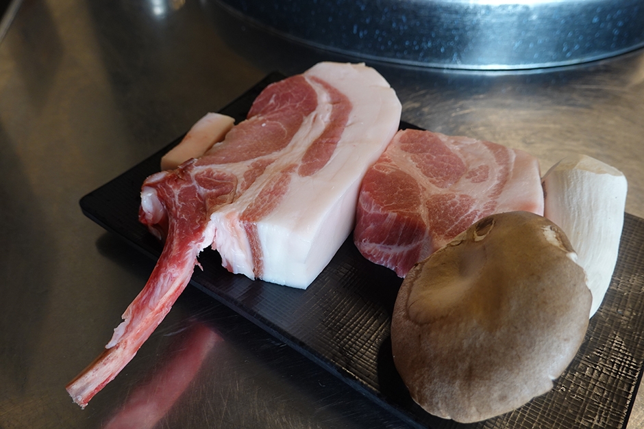 육도담 제주시청본점은 식약처에서 인증한 업소를 통하여 돼지고기를 선별하고 드라이에이징 하여 숙성한 돼지고기를 전문으로 하는 곳이다. 뼈대 있는 숙성뼈가브리, 풍미 담은 숙성뼈삼겹, 육즙감은 꽃목살, 육도담 삼겹살 등의 부위가 있으며 모든 고기는 부드러운 식감과 꽉 잡은 육즙이 특징이다. 곁들이는 소스가 나오고 반찬으로는 명란젓, 와사비, 멜젓, 쌈장, 백김치, 고사리와 함께 육도담만의 특제 젓갈 쌈장이 나온다.