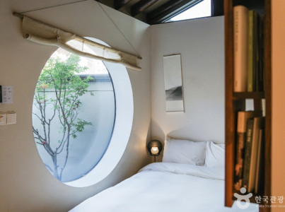 북촌의 좁은 골목 사이, 솔솔 퍼진 소나무 향기가 반겨주는 ‘유준당 바이 버틀러리’가 있다. 마당의 작은 소나무를 감싸 안은 ‘ㅁ’자 형태의 한옥인데요. 이 형태를 따라 머물면 ‘유준당 바이 버틀러리’의 매력을 더 깊이 알 수 있다. 가장 먼저 입구 왼쪽에 있는 다도실에서 향긋한 차 한잔을 마시고, 바로 옆 편백 욕조가 있는 욕실에 들어가 따뜻한 물로 온몸의 피로를 녹일 수 있다. 저녁엔 거실 소파에 앉아 빔프로젝터로 영화를 본 후 포근한 이불 속에서 잠들어 보시길 바란다.
