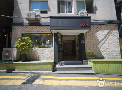 꼬모는 서울 지하철 명동역에서 도보 3분 거리에 위치한 게스트하우스로, 외국인 여행객이 특히 많이 찾는다. 객실은 1인 여행객부터 가족 여행객까지 아우를 수 있도록 다양하게 준비하였고, 객실마다 개별 화장실 겸 욕실을 갖춰 편의성을 높였다. 영어와 중국어에 능통한 스태프가 있고 짐 보관 서비스를 무료로 제공한다. 차량 10분 거리에 남산서울타워, 숭례문, 남대문시장 등 주요 관광지가 있다.