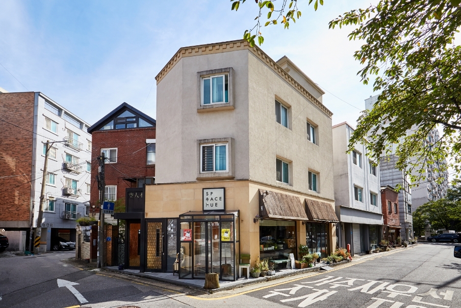 서울시 송파구 방이동에 위치한 스페이스 휴(space hue)는 목수 남편과 꽃차 소믈리에인 아내가 함께 운영하는 게스트하우스다. 1층은 주인장이 직접 운영하는 꽃차 전문 카페로 꽃차 시음이 가능하고, 2층은 게스트하우스로 직접 만든 가구와 나무, 돌 등 천연 재료로 마감하여 사람과 자연이 숨 쉬는 공간을 자랑한다. 방은 2개, 욕실은 1개이고, 주방과 세탁실도 있다. 벛꽃 피는 4월 초엔 방의 창밖으로 만개한 하얀 벚꽃 풍경을 만끽할 수 있다.