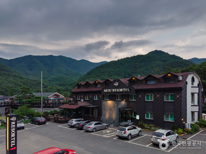 무주리조텔은 무주덕유산리조트 인근에 위치해 있다. 높은 고도에 있는 만큼 맑은 공기와 계곡 소리에 자연의 정취를 마음껏 느낄 수 있다. 감각적이고 모던하게 꾸며진 객실과 깨끗하게 세탁된 최고급 침구류가 안락함과 편안함을 제공한다. 산책과 겨울철 스포츠를 위한 여행객을 위해 든든한 조식을 제공하고, 조식 이외의 시간에는 한식당 레스토랑을 이용하면 된다.