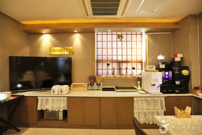 AT비지니스호텔은 경남 창원시청에서 도보 10분 거리에 있는 비즈니스호텔이다. 공용 컴퓨터와 프린터를 무료로 쓸 수 있는 비즈니스존, 공용 스타일러, 장기 출장객을 위한 세탁실을 갖춰 출장자의 편의성을 높였다. 객실은 총 26개로 다양한 타입이 구비되어 있고, 깔끔한 디자인이 돋보인다. 넷플릭스와 유튜브를 무료로 보며 긴장을 풀고 달콤한 휴식을 취할 수 있다.