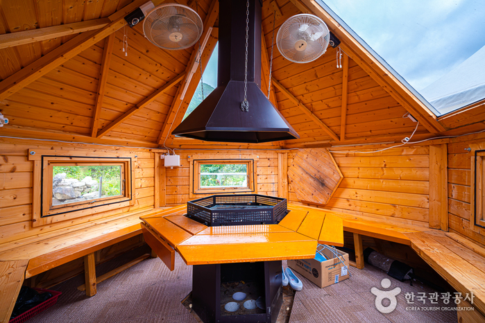 얼음골한옥펜션은 순수 황토로 지은 한옥이다. 객실은 총 3개, 황토, 참숯 가루, 황토 삼베로 지어 건강과 힐링을 선사한다. 또한 여름에는 시원하고, 겨울에는 따뜻하며 고즈넉한 분위기를 자랑한다. 주방과 화장실은 현대식으로 편의성을 높였고, 부대시설로 야외수영장, 야외 바비큐장, 굴렁쇠, 투호 등 전통놀이 시설이 있다. 계절마다 사과 따기 체험, 밤 줍기, 야외 캠핑 등을 운영한다. 펜션이 해발고도 400m에 위치해 있어 굽이굽이 물결치는 능선의 영남 알프스의 장관을 즐길 수 있다.
