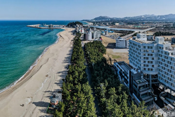 강릉 경포대 송정해변, 소나무 숲이 걸어서 3분 거리에 있어 어르신들은 소나무 숲에서 아이들은 바닷가에서 즐거운 시간을 보낼 수 있는 강릉 여행의 진수를 맛볼 수 있다. 아파트 57평이고 1층이라 아이들과 숨바꼭질이 가능한 숙박업소다.
