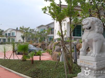 JJ하우스는 청정환경, 전통문화, 동계스포츠훈련장, 휴양관광지가 집중된 서귀포시에 위치하고 있다. 펜션 주변에 집중된 관광지와 골프장, 종합운동장, 옥빛바다, 배후에 한라산이 있다.JJ하우스는 친환경소재인 천연옥을 원석상태로 가공하여 건축자재로 사용하였으며 내벽과 외벽에도 옥을 분말로 만들어 마감한 친환경 건강펜션이다. 중문관광단지, 산방산, 마라도, 중문해수욕장, 여미지, 천지연폭포, 각종 박물관 등이 10km 이내에 있어 접근성이 뛰어나다.