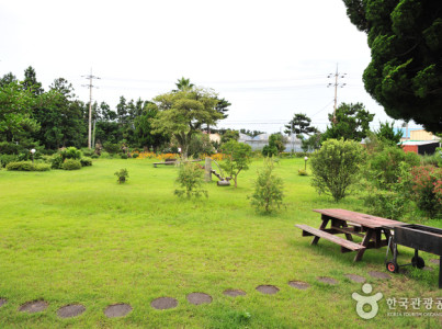 사람과 자연이 어울리는 곳 낭만의 섬 제주에 위치한 귤 익는 마을은 돌담과 감귤 과수원이 자연 그대로 어우러져 있어 마음을 편안하게 해 주고 넓은 잔디마당에 있는 야자수와 철쭉 등이 아기자기한 정원을 이루고 있다. 집의 외부는 서구식 스틸하우스로서 이국적이고 세련된 느낌을 주며 내부는 건강에 좋은 황토로 처리하여 따뜻한 느낌을 준다. 집 안에는 필수 가전제품을 모두 갖추어 놓았으며 사람과 자동차의 왕래가 드물어서 한적하고 여유롭다. 정원에서는 바비큐 파티를 하고 아이들과 공놀이를 할 수 있다. 또한 바로 옆에 있는 과수원에서 귤나무에 꽃이 피고 열매가 달리고 노랗게 익어가는 모습을 볼 수 있고 수확기가 되면 맛있는 귤을 마음껏 맛볼 수 있다.
