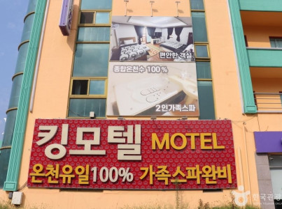 문경 온천지구내에 위치한 킹모텔은 붉은색 건물 외관이 눈에 띄는 온천 모텔이다. 시설은 노후하였지만 깨끗하게 잘 정돈된 객실은 침대와 온돌로 구성된 일반실, 1인 스파 시설이 있는 일반실, 2인 스파 시설이 갖추어진 중특실과 4인에서 8인이 머물 수 있는 특실로 이루어져 있다. 문경종합온천지구는 1995년 경상북도로부터 온천지구로 지정 고시되어 2001년 개장한 곳으로, 온천을 중심으로 다양한 숙박시설과 다양한 식당들이 자리 잡고 있어서 문경의 대표적인 여행지로 꼽힌다. 주변 관광지로는 문경새재, 철로자전거, 석탄 박물관, 경천댐, 사극 드라마 촬영장 등이 있다.