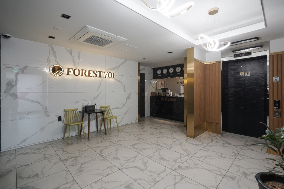 호텔포레스트701은 동대구역에 위치한 호텔로, 2023 소비자평가우수업체이자 여성안심숙박업소이다. 동대구역에 위치하여 대구 중심지와 수성못 등의 번화가와 거리가 가깝다. 객실은 디럭스부터 스위트, 복층룸까지 다양해서 선택하기에 좋다. 전 객실에 고사양PC가 설치되어 있고 넷플릭스 시청이 가능하다. 호실에 따라 욕조와 안마의자가 있어 하루의 피로를 풀기에도 좋다 출장객은 비즈니스센터에서 컴퓨터, 프린트기, 팩스를 이용할 수 있다. 2층 카페에서 무료로 조식을 제공하는데, 특히 한식 조식에 대한 평이 좋다.
