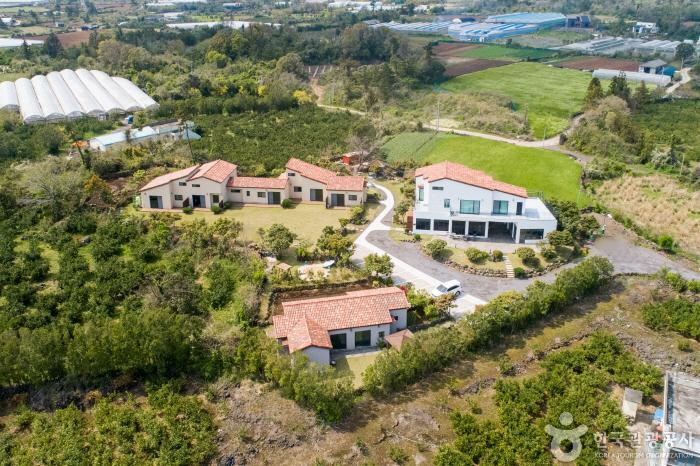 제주시 한경면에 위치한 틸다하우스는 돌담을 두르고 주홍빛 지붕을 얹은 예쁜 건물들이 모여 있는 유럽풍의 펜션이다. 객실은 총 6개로 커넥팅룸과 독채도 있어 숙박인원에 맞게 선택할 수 있는 폭이 넓다. 장난감과 책이 비치된 실내 키즈룸과 모래놀이터, 잔디마당도 있어 아이와 여행하기에도 좋다. 매일 아침 조식 뷔페가 제공되고, 사전 예약 시 야외 바비큐장 이용이 가능하다. 인근에 우주항공박물관, 오설록뮤지움, 유리의 성 등이 있다.