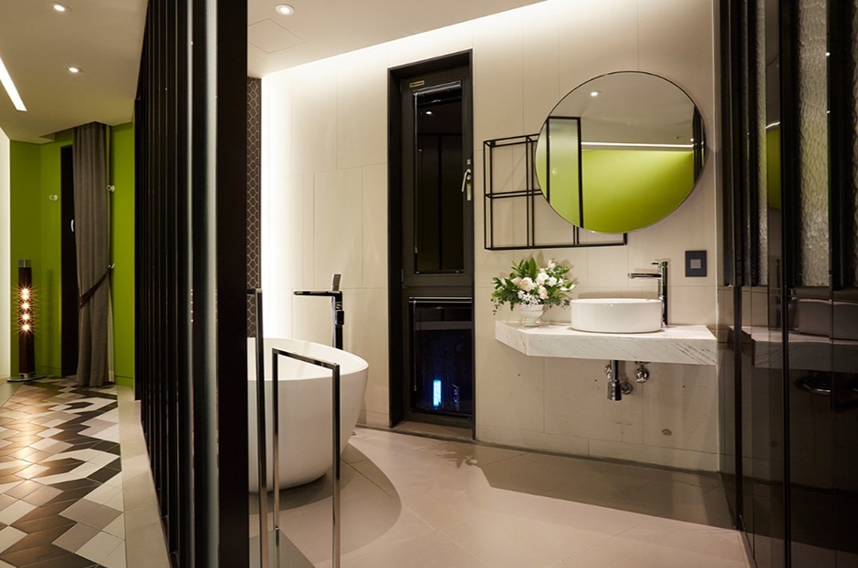 나인 브릭 호텔은 지루한 일상에서 벗어나 각기 다른 테마를 가진 객실에서 특별한 추억을 경험할 수 있는 곳이다. 객실은 슈페리어 더블, 슈페리어 트윈, 디럭스 더블, 프리미엄 디럭스 더블, 주니어 펜트하우스, 클래식 펜트하우스로 구성되어 있다. 모든 객실에는 에어컨과 냉장고가 완비되어 있다. 또한, 목욕 가운, 헤어드라이기, 슬리퍼 등이 구비된 욕실이 있다. 호텔 내부 레스토랑에서는 조식, 점심, 저녁 식사를 이용할 수 있기 때문에 객실에서 멀리 나가지 않고도 식사를 즐길 수 있다.