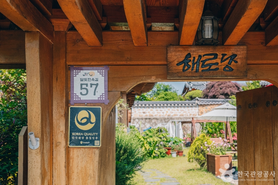 해로당은 전남 보성 강진 달빛한옥마을에 자리한 한옥 숙소로, 장엄한 월출산과 근처 다원의 녹차 향이 가득 담긴 공간이다. 객실은 편백나무 향이 어우러진 황토방 3개로, 가장 넓은 방인 노을방은 방과 툇마루가 연결되어 있어 툇마루에서 월출산 능선을 한눈에 담을 수 있다. 산들정은 여름에는 가장 시원하지만 겨울에는 쌀쌀해 동절기에는 운영하지 않는다. 마당에는 야외 테이블과 흔들 그네, 자태가 고운 정자가 있다. 조식이 무료로 제공된다.