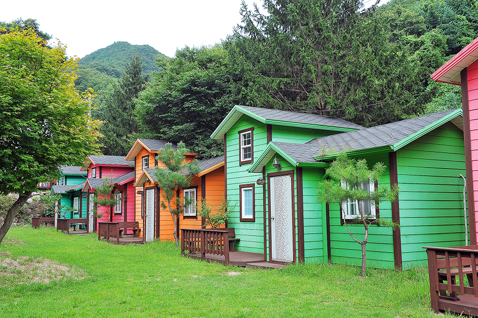 계곡과 소나무 펜션은 포천 일동면 화대리에 위치하고 있다. 펜션은 원룸에서 별채 단체룸까지 다양한 객실이 있어 인원에 맞춰 선택, 예약하면 된다. 이곳은 컬러풀한 펜션 건물이 눈길을 끈다. 빨강, 주황, 초록, 주황, 분홍의 알록달록한 색들이 나무와 어우러지면서 그림 같은 풍경이 연출되며, 특히 겨울철엔 지붕 위에 눈이 소복이 쌓인 모습이 펜션계의 겨울 왕국이라 불릴 정도로 아름답다. 곳곳에 초록빛 나무가 있어 피톤치드가 가득하고, 4km 길이의 무인계곡이 흐르고 있어 무더운 여름철엔 물놀이를 즐길 수 있다. 계곡에는 커다란 바위가 있어 잠시 누워서 휴식을 취할 수도 있다.