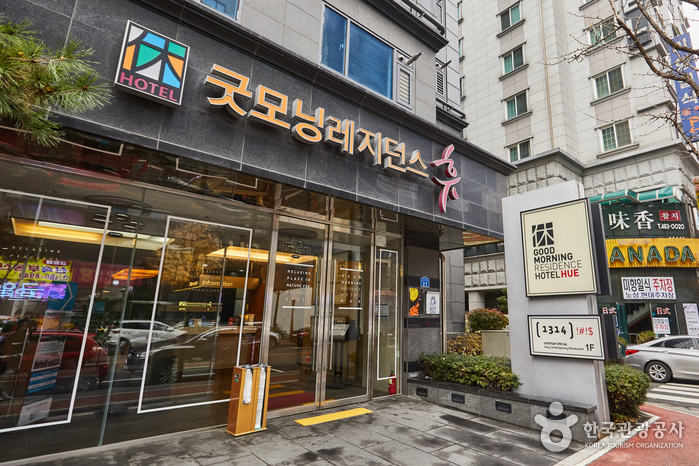 대전 둔산로에 위치한 굿모닝레지던스호텔휴는 밝고 편안한 객실과 맛있는 조식을 제공하고 장기고객을 위해 취사 시설, 세탁기 및 각종 가전제품을 갖췄다. 시청역이나 고속버스 대전 정부청사 터미널에 가까이 위치해 있어 교통이 편리하고 합리적인 가격에 숙박할 수 있다. 세미나실(회의실)도 있어 기업체나 협회에서 회의공간으로도 이용할 수 있다.