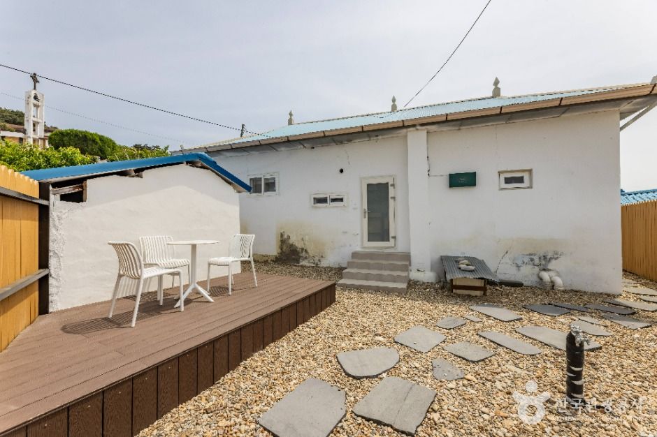 파라다이스 스파 도고에서 차로 5분 거리에 있다. 독채로 되어 있어며 숙박은 최대 6명까지 가능하다. 숙소 앞 마을회관 주차장에 무료로 사용이 가능하다. 또 방마다 책상, 의자가 있어서 독서나 업무가 가능하다. 호스트가 직접 제작하여 마을 산책로와 주변 관광지, 맛집 정보가 담긴 ‘마을안내지도’를 제공하여 따라서 관광도 가능하다. 실외 바비큐 및 실내 구이류 조리는 불가능하다. 체크인할 경우 셀프로 가능하다.