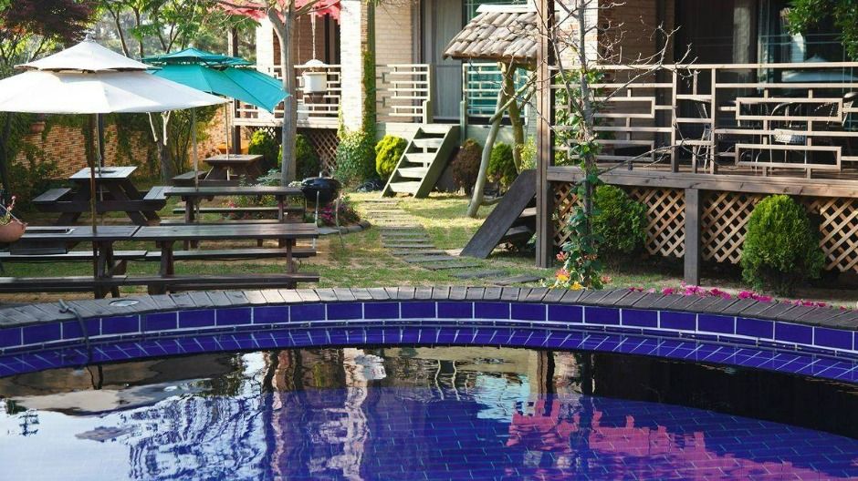 엘도라도 펜션은 가족과 연인, 친구와 함께 태안 바다를 즐길 수 있는 수영장이 있는 펜션이다. 펜션은 11개의 객실로 운영되며 50m 앞에 바다가 있어 언제든 해수욕이 가능하다. 화이트톤의 감각적인 객실 내부는 깨끗한 분위기를 자아내며, 넓은 잔디정원에 꾸며진 인테리어 소품과 미니 풀장은 더욱 운치가 있다. 미니풀장은 수심이 있는 편이라 초등학생들도 재미있게 놀기 좋다. 테라스에 개별 바베큐장이 있고, 날씨와 인원에 따라 야외 바베큐장 실내 바베큐장을 이용하면 된다. 정원에 있는 풀장은 지하수를 이용해 한여름에도 뜨거운 태양을 피할 수 있는 휴식처가 된다. 엘도라도 펜션은 해안선을 따라 우거진 향긋한 솔숲의 향기가 가득하고, 바로 앞에 푸른 바다가 펼쳐져 있다. 1분 거리 마검포 해수욕장에서는 갯벌 체험도 가능하다. 주변 볼거리로는 안면도 백사장항과 안면도 자연휴양림 등이 있다.