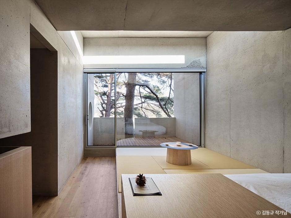 서로재는 ‘새벽 이슬을 맞이하는 집’이라는 뜻으로 그 이름처럼 새벽녘 풀 잎에 맺힌 이슬을 맞이할 수 있는 곳에 위치하고 있다. 서로재에 머무시는 동안 오랜 시간 이 땅에 자리 잡은 소나무들과 그 사이를 지나가는 바람, 새들의 노랫소리, 풀잎에 맺힌 이슬과 푸르른 이끼 정원, 빛이 수놓은 그림을 통해 충만한 자연을 경험하실 수 있다. 공기마저 차분한 곳, 이곳 서로재에서 자연을 통해 당신의 고단함이 차분히 위로 받기를 바라는 서로재이다.