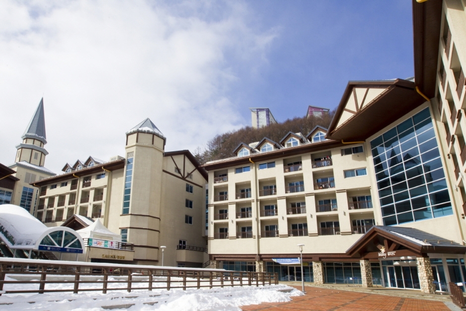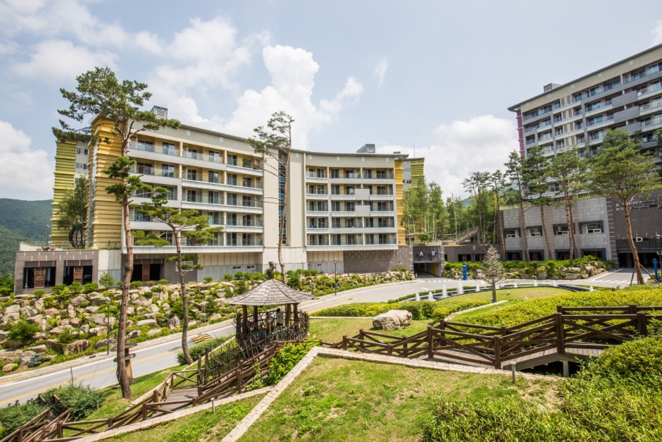 이국적 낭만이 가득한 마운틴콘도는 복층 구조의 넓고 여유로운 공간, 고급 대리석과 원목 마루로 마감한 격조 높은 인테리어가 차원이 다른 편안함을 주며 가족과 함께라면 더욱 즐거운 곳이다. 하늘샘 노천(SPA), 스키스쿨 등 최고의 부대시설을 갖춘 마운틴콘도는 지상 10층, 지하 1층의 규모로 펜트하우스 개념을 가진 최고급 콘도이다.