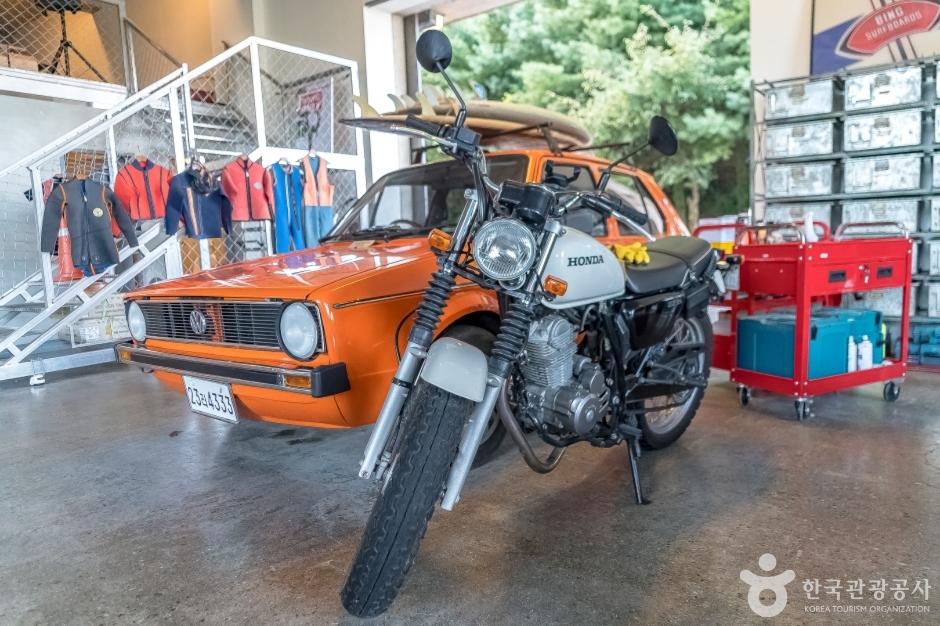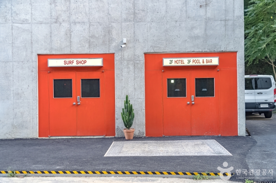 강원도 양양 기사문해변에 위치한 루프탑 수영장을 갖춘 아메리칸 서핑 감성을 그대로 느낄 수 있는 숙소이다. 회색 시멘트 외벽의 3층 건물에 1층은 브런치로 유명한 카페, 2, 3층은 호텔로 운영된다. 4층에 루프탑 수영장과 바가 있다. 미국의 집집마다 있는 개인 차고지 컨셉의 호텔이며, 클래식 자동차도 있어서 인스타그램 핫플로 알려져 있다. 온수 풀은 미국 특허를 받은 수영장 전용 히트펌프를 사용하여 시즌에 맞게 수영장 물을 따뜻하게 또는 차갑게 할 수 있는 시스템과 깨끗한 수질 관리를 위해 친환경 해수 풀 시스템을 갖추고 있다. 이 호텔은 노키즈존이고, 2인실에 인원추가가 불가하며 주방 시설이 없다. 룸 타입은 2가지가 있어 선택할 수 있다. 11개 객실이 모두 같은 구조이며, A타입은 조금 진중한 색의 우드를 사용한 룸이고, B타입은 밝은 분위기의 우드를 사용한 룸이다. 주변에 낙산사, 하조대, 남애항, 오색탄산온천 등의 관광지가 있다.