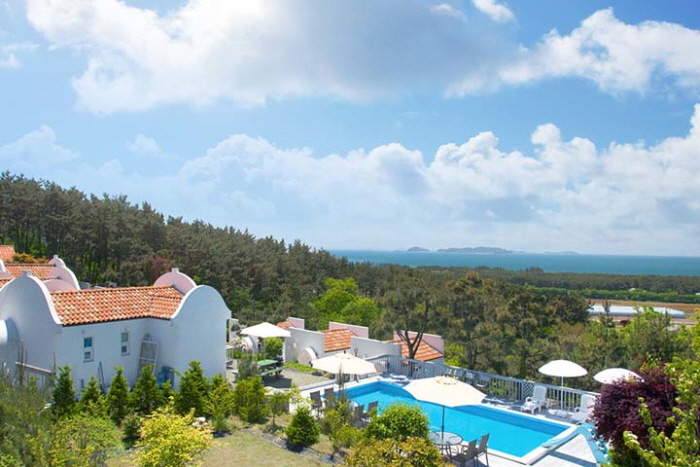 청포대 해변을 바라보는 언덕에 자리한 그람피하우스는 마치 동화 세계처럼 예쁘다. 하얀 벽에 주황색 지붕을 얹은 지중해풍 독채 건물이 14동이나 모여있으니 동화 마을로 여행 온 기분이다. 그람피는 백설공주와 일곱난쟁이에 나오는 난쟁이 이름이다. 각 건물에 백설공주나 난쟁이 이름을 붙여 놓았다. 모든 객실이 독채로 되어 있고 내부 역시 예쁘고 깔끔하게 꾸몄다. 복층 구조와 아기자기한 장식, 청결한 화장실, 모던한 주방까지 갖춰 여행자들의 만족도가 높다. 그람피하우스와 주변 숲으로 이어진 산책로는 가볍게 걷기 좋고, 잘 가꾼 잔디정원에서 바라보는 바다 풍경은 무척 아름답다. 예약 시 신청하면 유아용 놀이 텐트 대여, 갯벌 체험 도구 대여, 바다낚시도 가능하다. ATV·서바이벌 할인, 안면도쥬라기공원 입장권 20% 할인권, 카페에서 주인장이 직접 드립커피를 준비해 준다.
