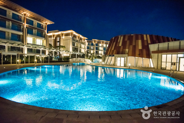 제주신화월드 호텔 앤 리조트의 중심부에 위치한 메리어트관 제주신화월드 호텔 앤 리조트는 총 527개의 객실을 보유하며, 이스트 2동과 웨스트 2동으로 구분되는 전체 객실 중에서 30%는 커넥팅룸으로 구성해서 친구들끼리 함께 여행하기에도 좋다. 6층에 위치한 객실 중 프리미어 이상의 객실에는 욕실에 히노끼탕을 설치하여 특별함을 더했다. 제주의 성산일출봉을 모티브로 한 '모실' 에는 실내외 수영장이 연결되는 25m 길이의 랩풀, 어린이 전용 수영장 및 놀이터, 야외 풀 등이 있으며 7개의 전용 트리트먼트룸을 갖춘 스파, 실용적인 크기의 피트니스 센터와 사우나로 건강과 휴식을 동시에 제공한다.